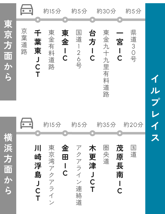 JR上総一ノ宮駅からタクシーで約10分